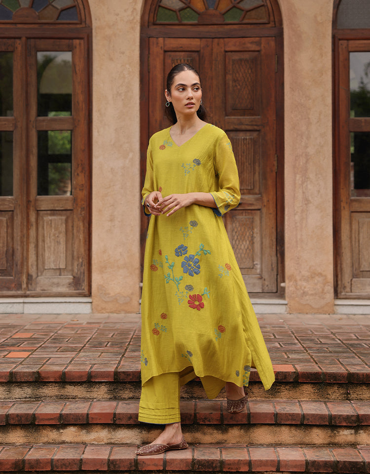 Citrine Floral Applique Kurta Set
