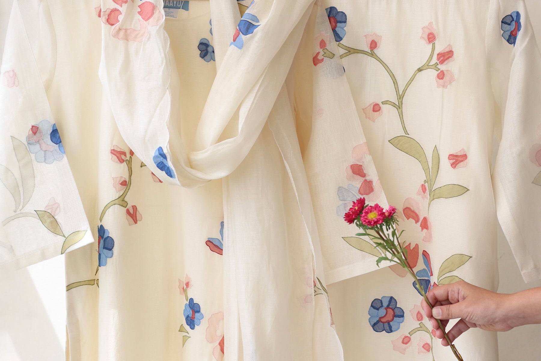 Sky Floral Applique Kurta Set