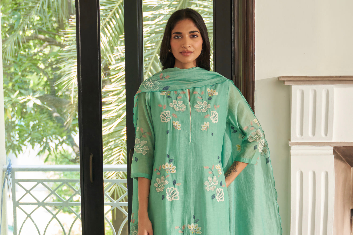 Porcelain and Sage Applique Kurta Set