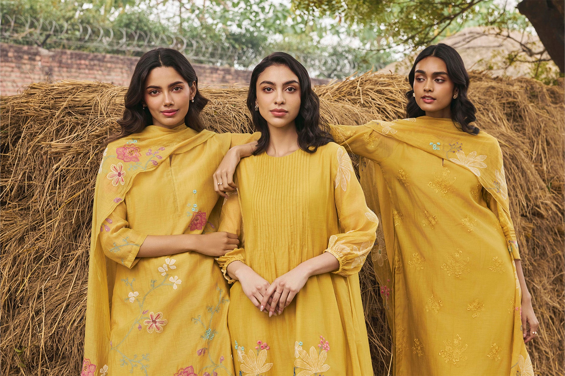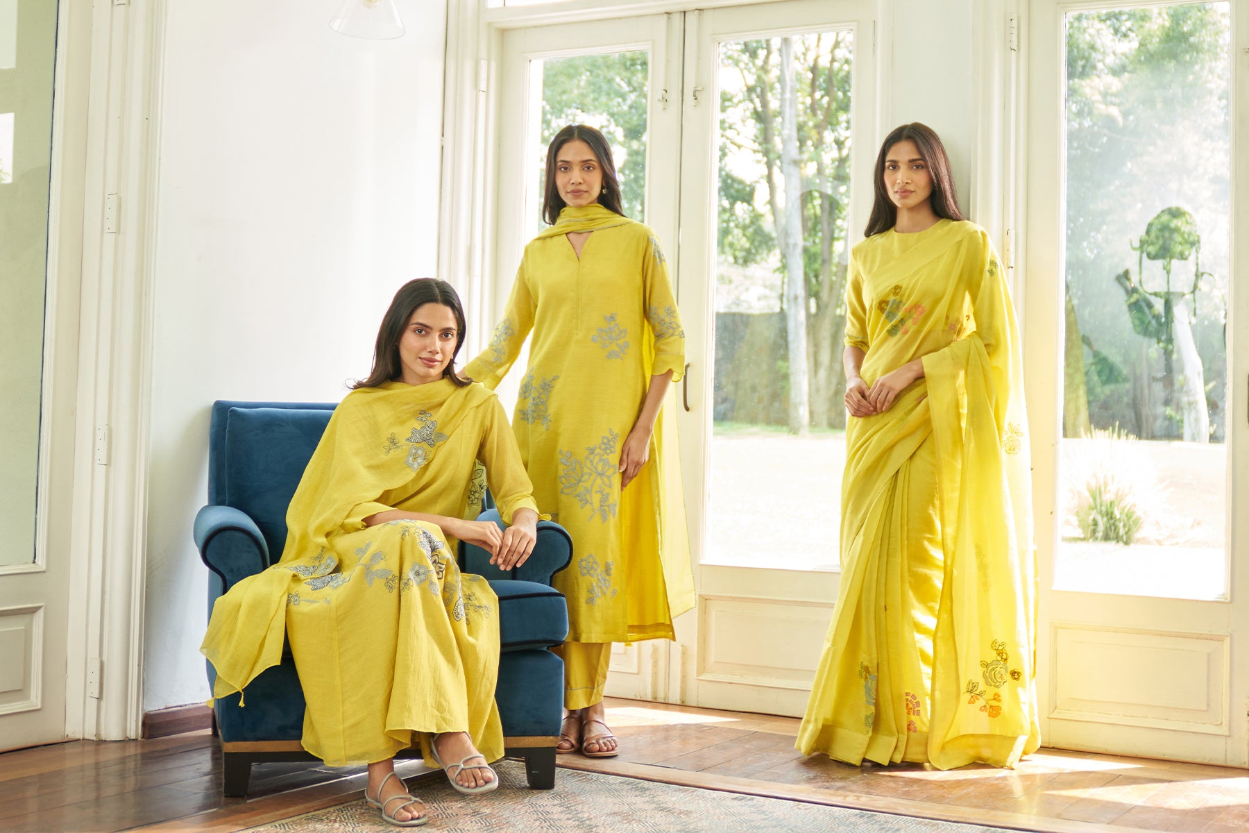 Daffodil Floral Applique Kurta Set