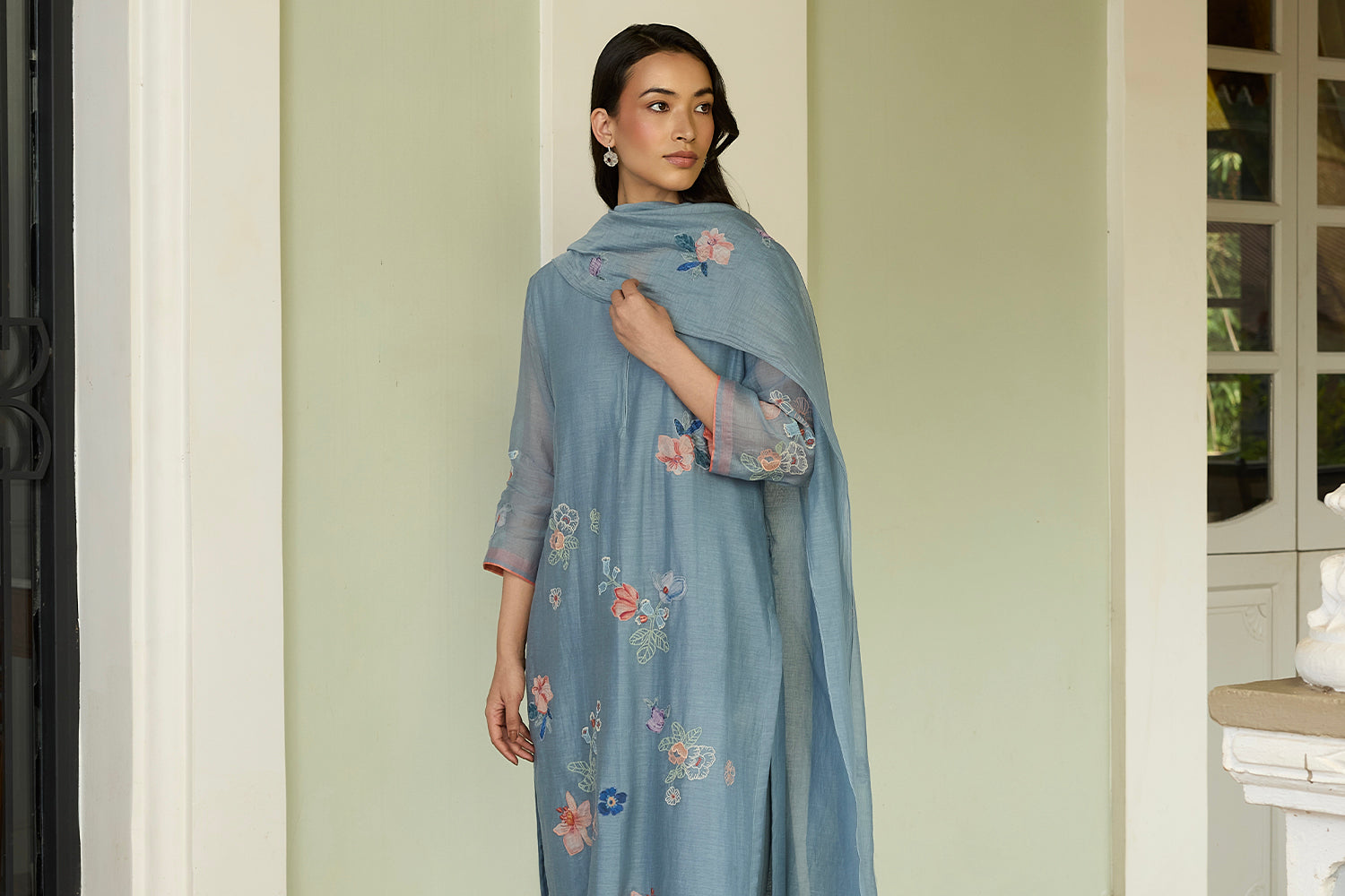Mist Blue Applique Kurta Set