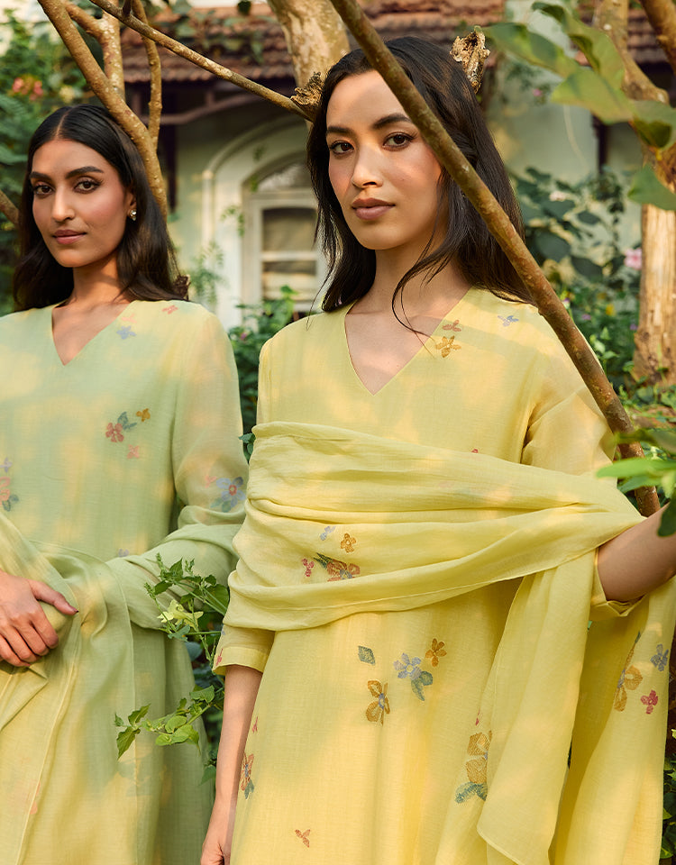 Lemon Embroidered Bloom Kurta Set
