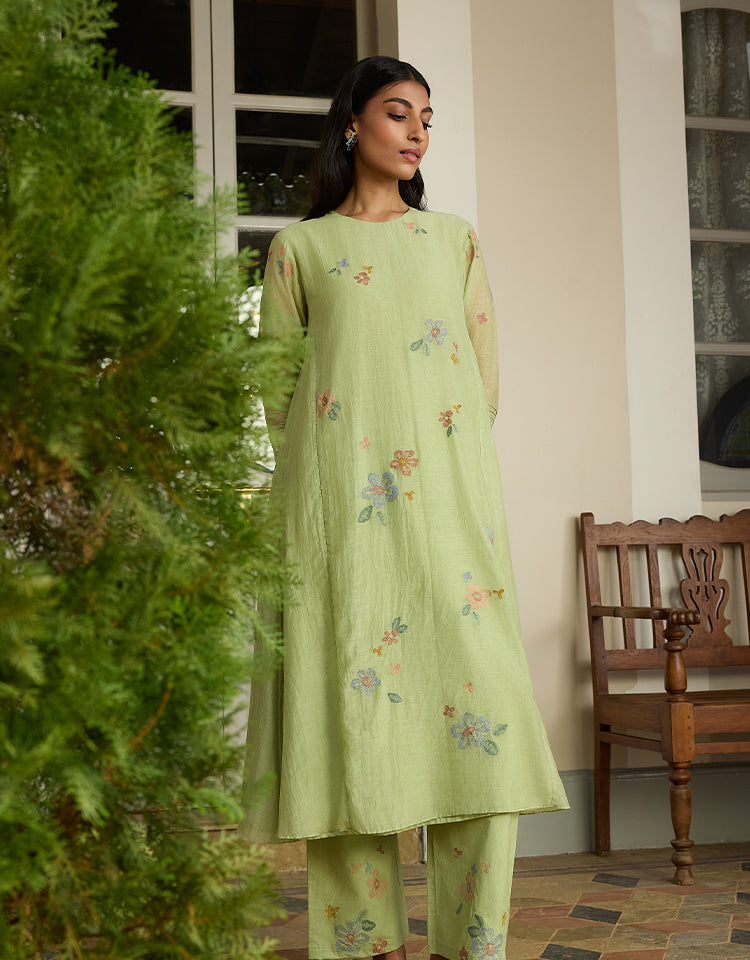 Porcelain and Sage Applique Kurta Set